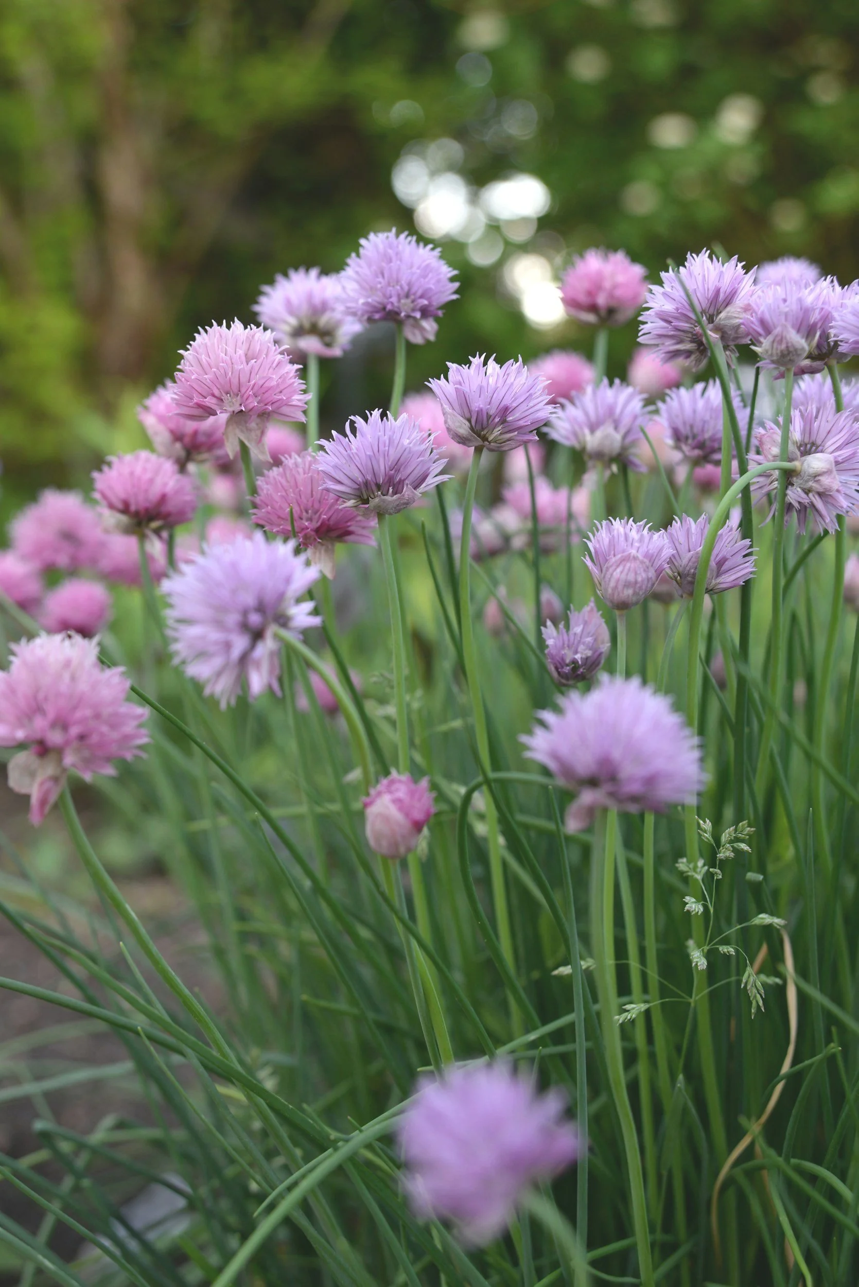This is a flowering chive that I have in my garden. My mother-in-law gave me a clipping years ago and it keeps coming back. I use it both for cooking and decorative purposes. The little flowers are so sweet.
