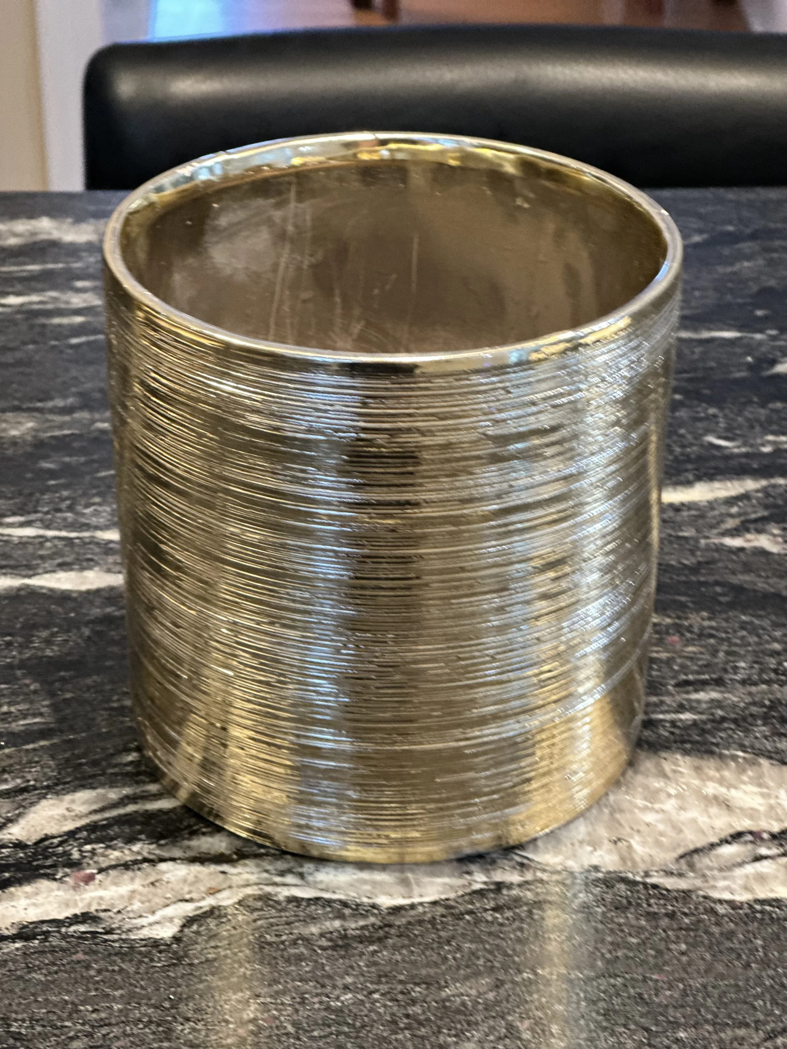 The gold vase was a deliberate choice. Its soft sheen echoes the gold rims around the plates and the gold chargers beneath them, carrying that festive note upward from the place settings into the center of the table. This repetition creates cohesion. When materials and finishes appear in more than one place, the table feels complete without needing additional decoration.