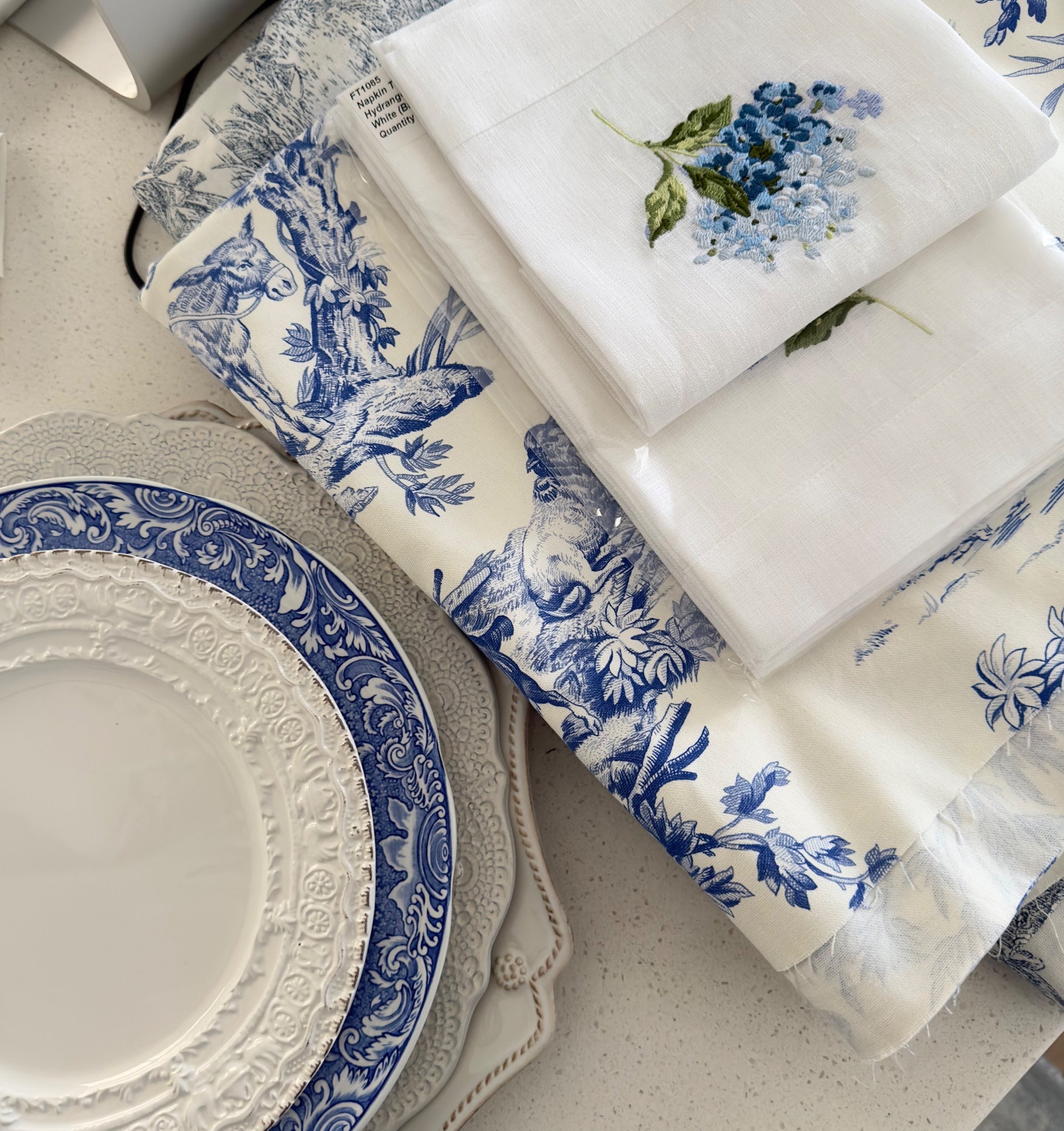 Embroidered Elegance: Imagine soft, billowing hydrangeas dancing across your table. Embroidered hydrangea linen napkins add a touch of whimsical beauty, their delicate blooms a delightful contrast against crisp white linens.