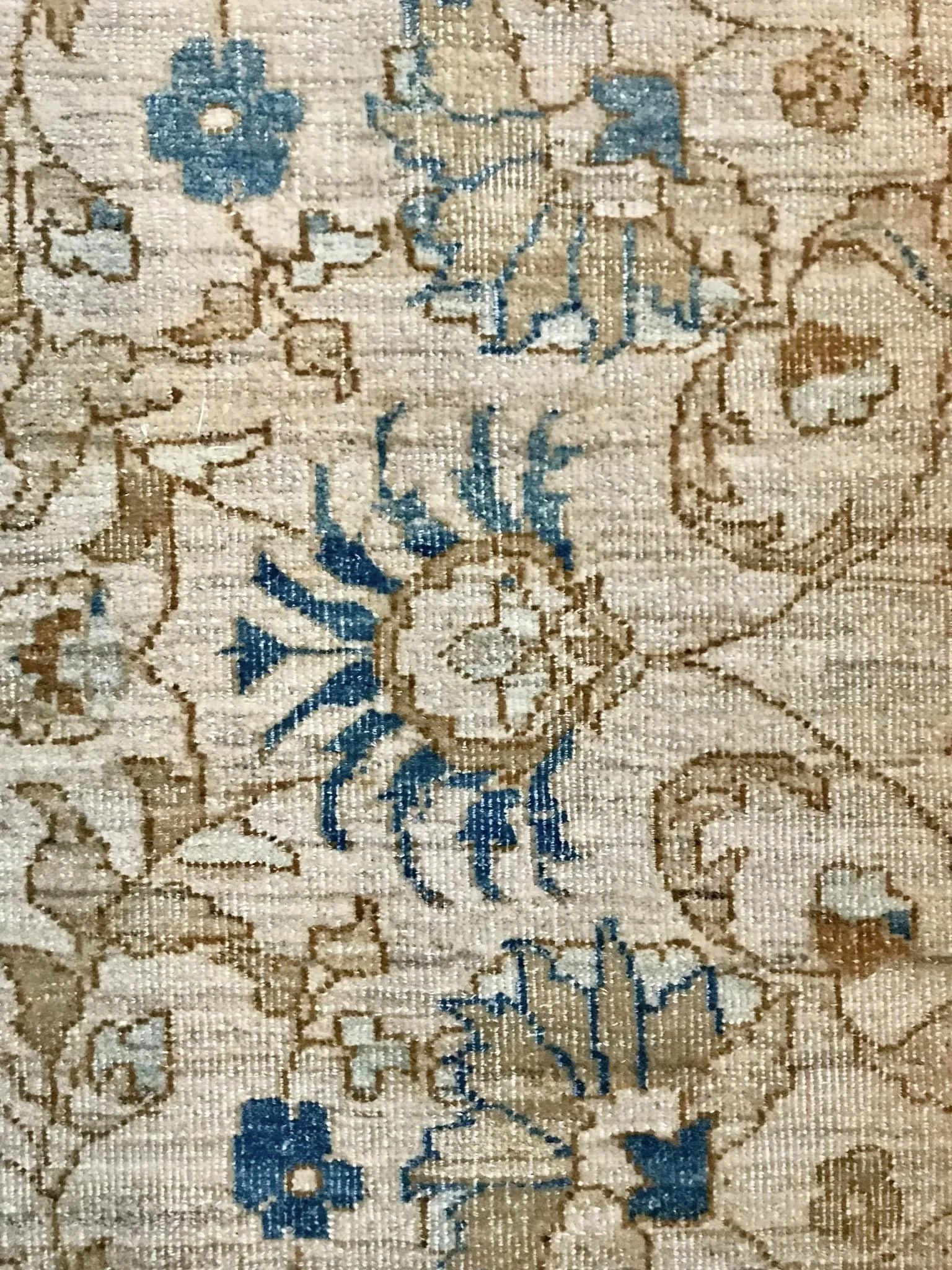 The antique Parisian carpet has lovely light golds, different hues of blue and cream. When selecting my textures I am looking at the colors within my carpet to further carry them into my space.