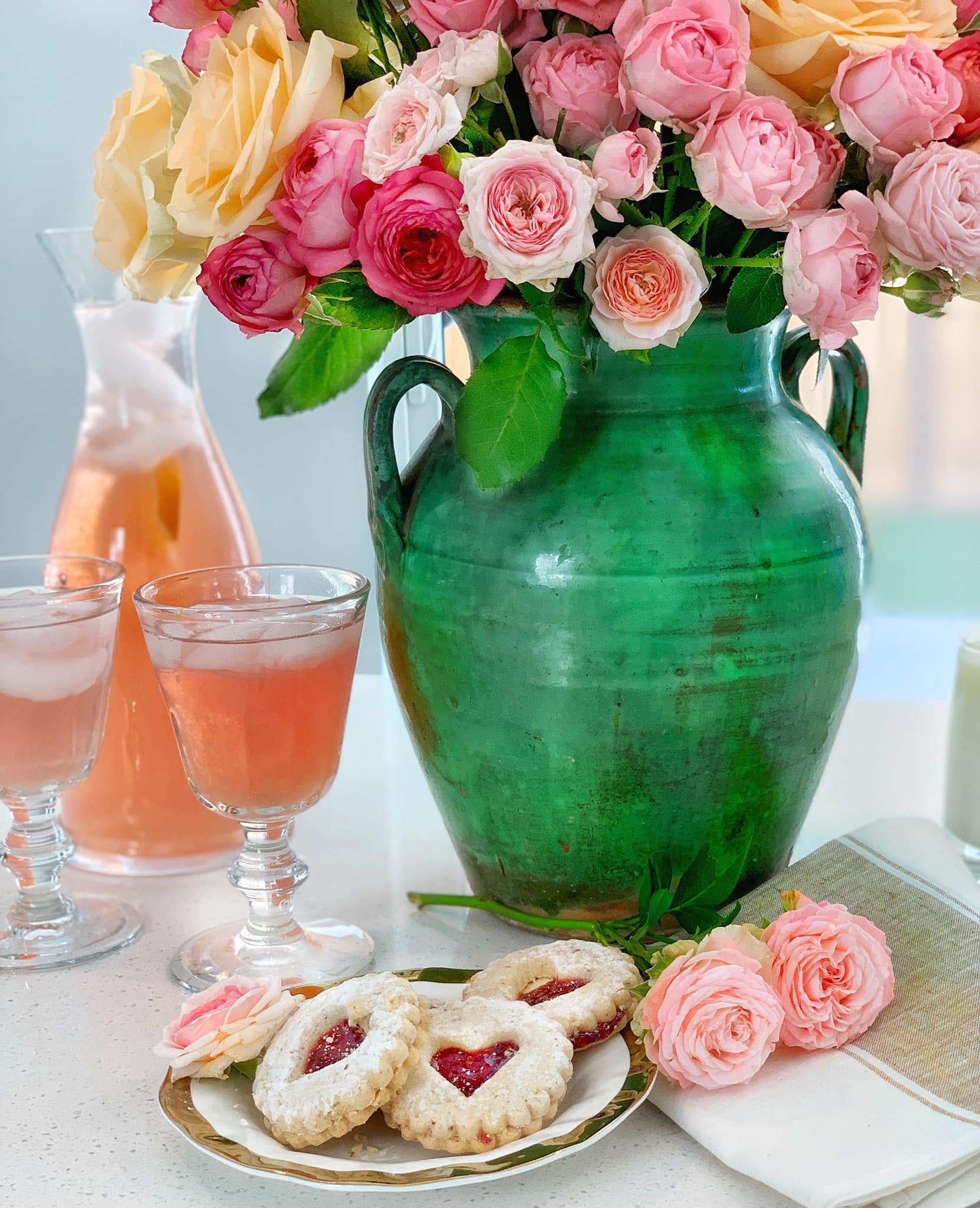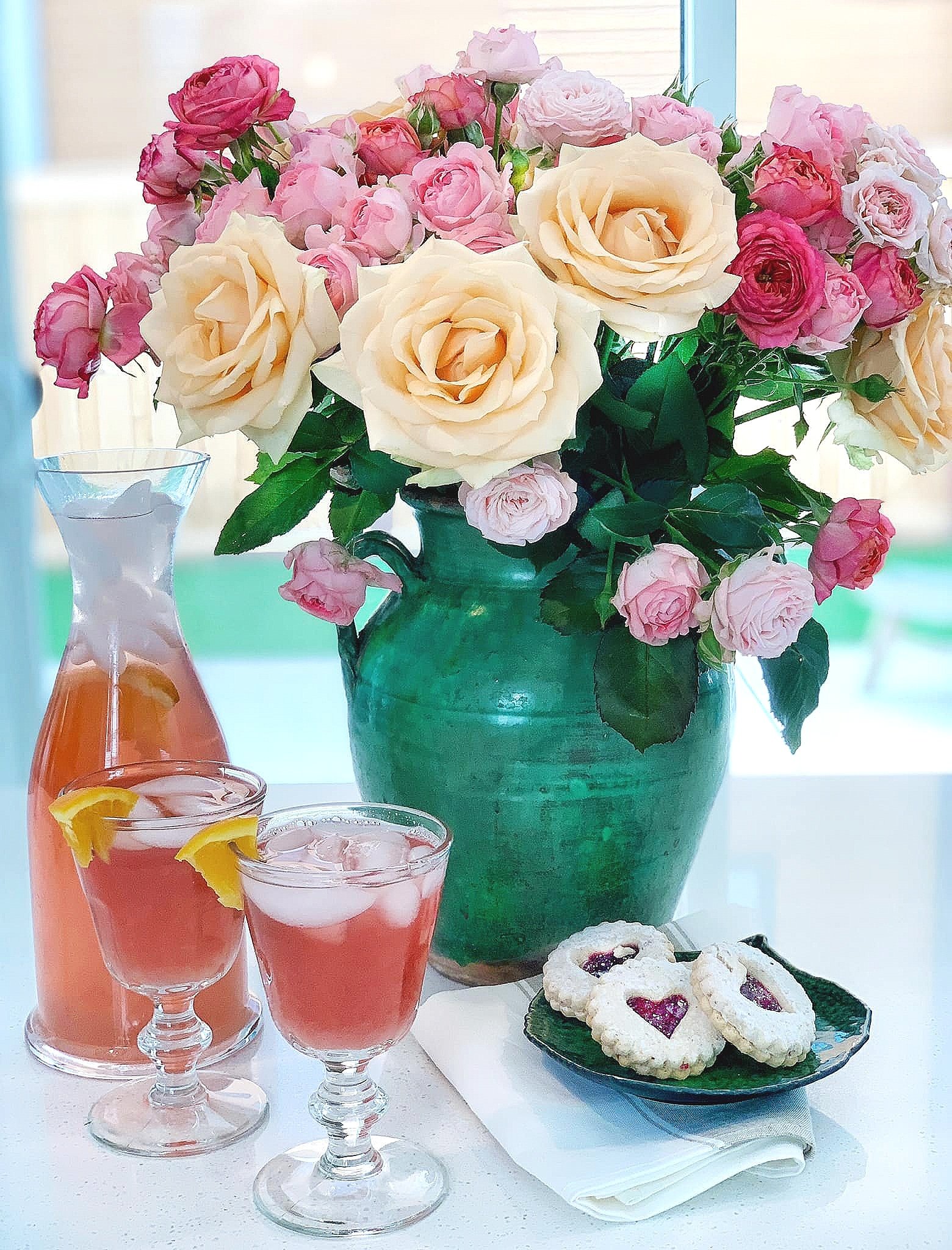 This is the bouquet I made with the roses I purchased. The array of roses IS just spectacular. This confit pot is an antique, and I didnβt want to add water to it. The trick is to PLACE a smaller vase filled with water into the confit pot. then place the flower stems into the vase that is filled with water.