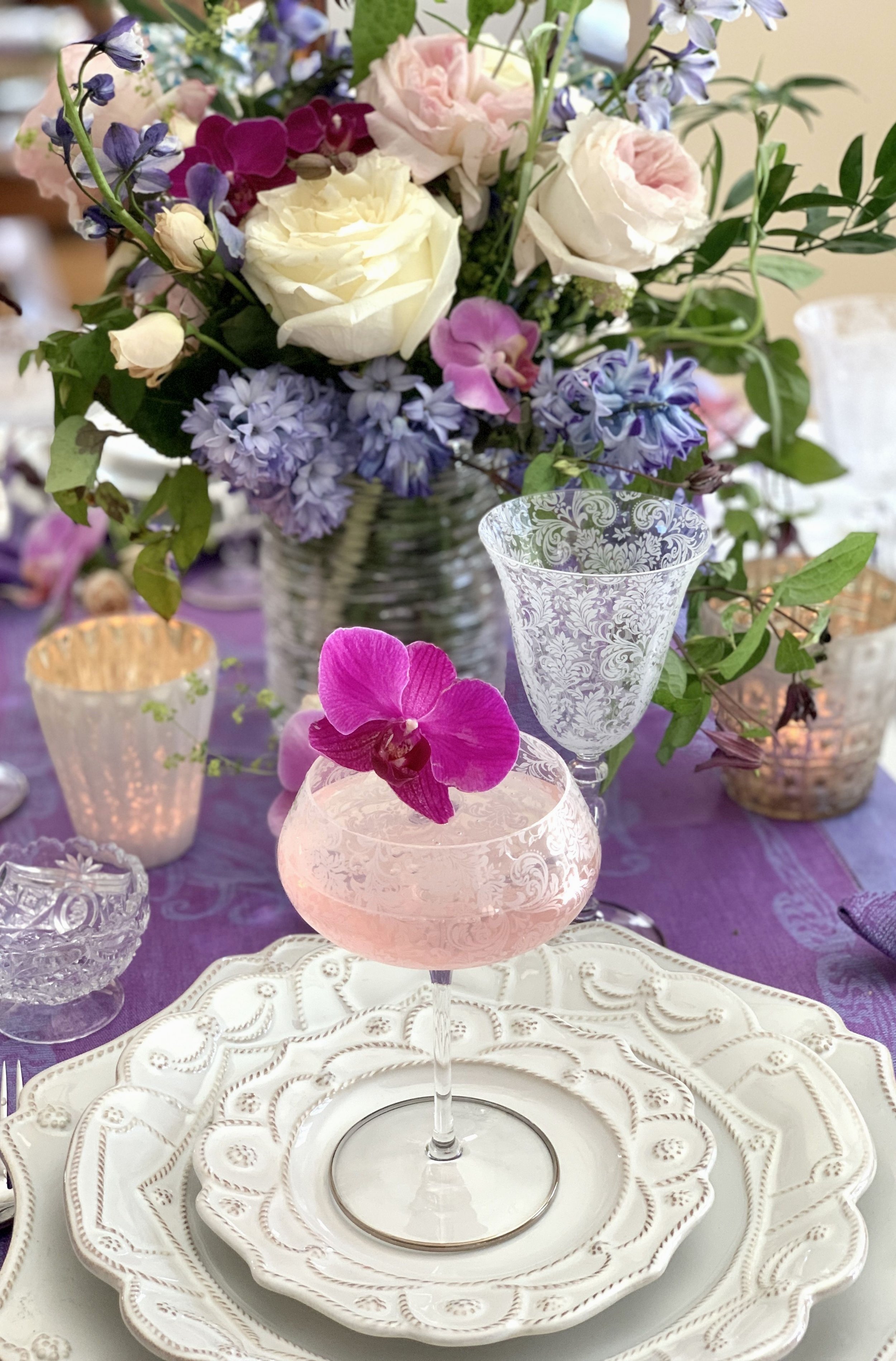 Of course, I had to serve a delicious cocktail for brunch, and I poured some Prosecco into the glass and added just a drizzle of Grenadine to it. The orchid is spectacular, and the bloom is edible if you get them without pesticides. To me, orchids are one of the most beautiful blooms for garnishing drinks, appetizers, and the like. They are elegant and colorful. What a presentation! I gave my daughter the same glass but added some Sprite. She loved being fancy!